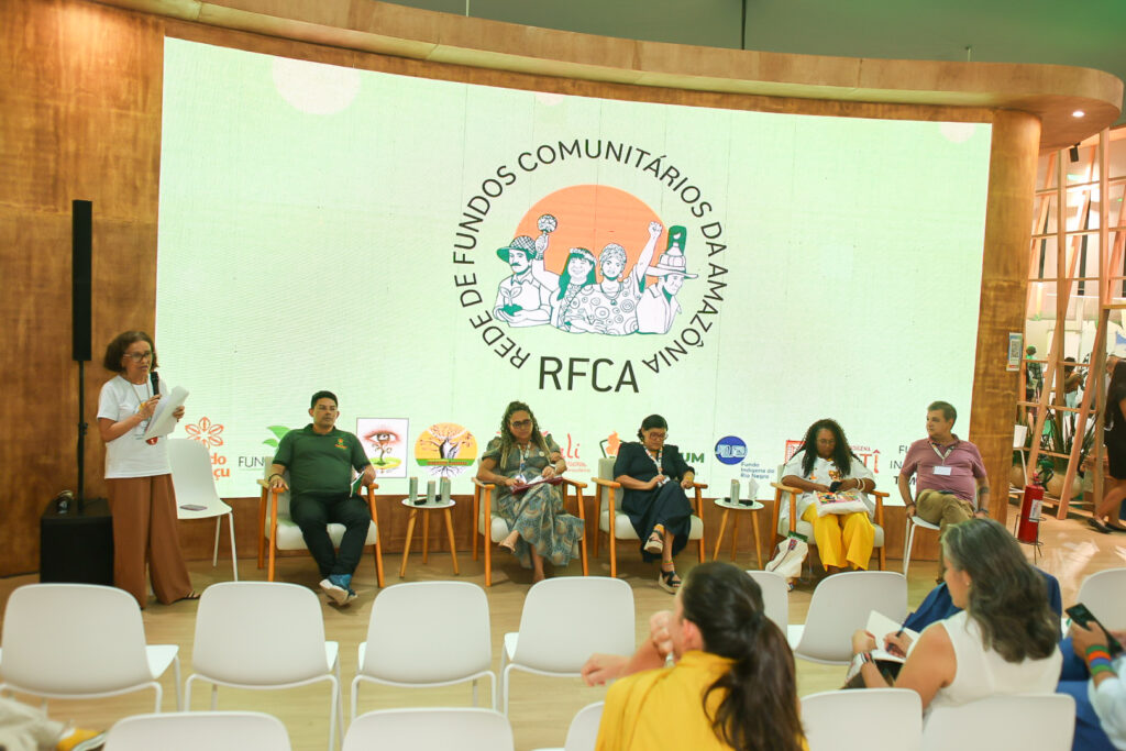 A mesa foi moderada por Graça Costa, do Fundo Dema, e contou com a participação de representantes de fundos e organizações que vêm atuando na linha de frente do financiamento comunitário na Amazônia: